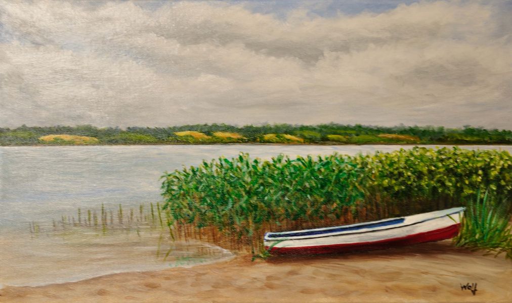 Strandabschnitt bei Hohenfelde an der Ostsee, Ölfarben auf Leinwand 80 x 40 cm.